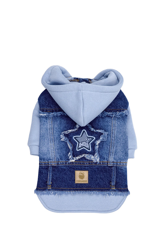 FOURAMOUR Bebek Mavisi Kapüşonlu Köpek Denim Ceketi