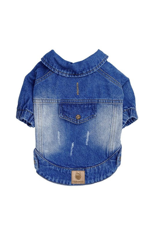 FOURAMOUR Orta Yıkama Denim Köpek Ceketi “Rodeo”