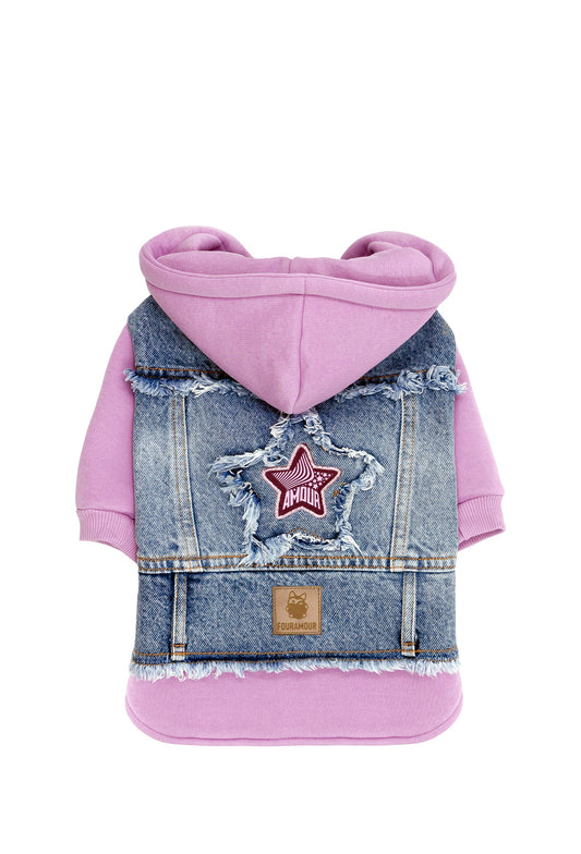 FOURAMOUR Comfy Pembe Kapüşonlu Köpek Denim Ceketi