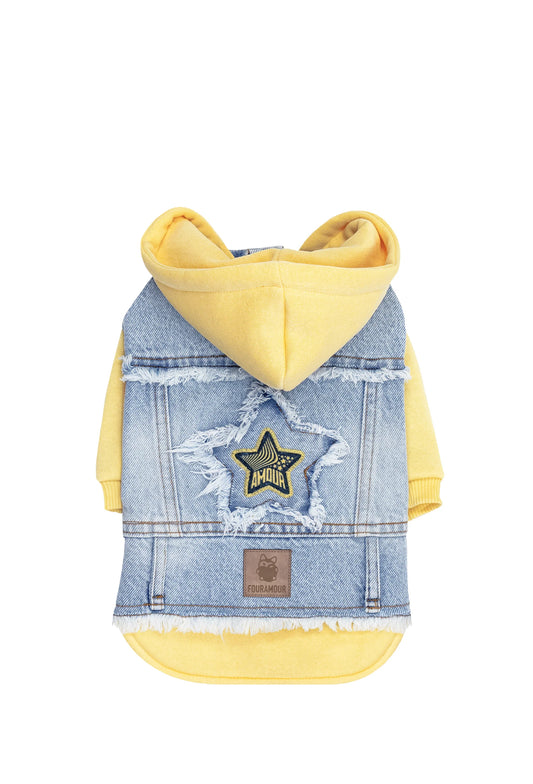 FOURAMOUR Açık Sarı Kapüşonlu Köpek Denim Ceketi