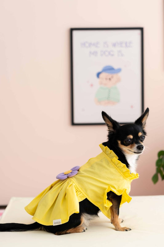 LORİCO SARI ÇİÇEKLİ KÖPEK ELBİSE