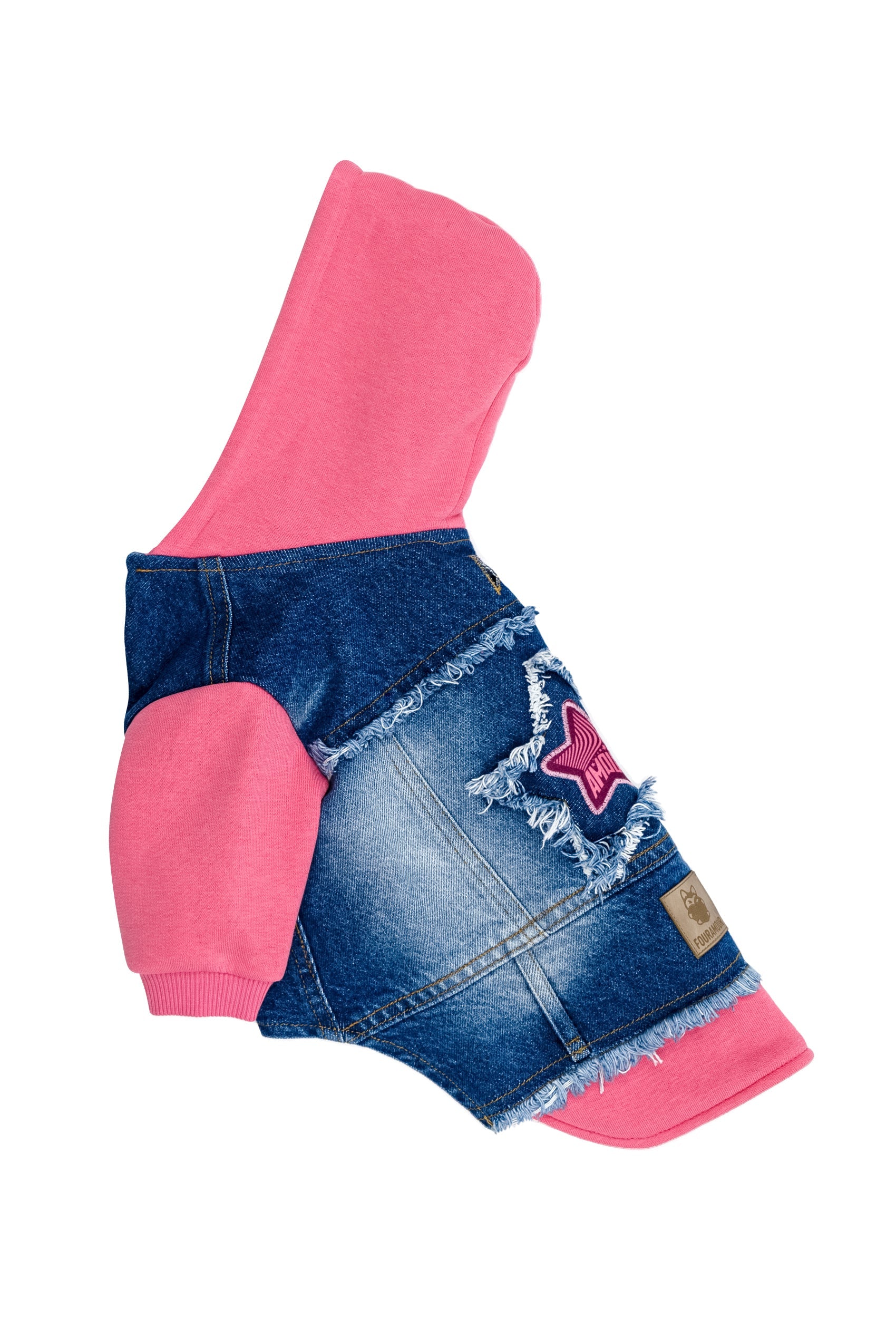 FOURAMOUR Comfy Pembe Kapüşonlu Köpek Denim Ceketi